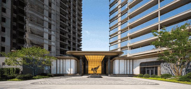 超18米的雅奢入口、7米酒店式挑高入户,搭配门前的艺术雕塑,给人以视觉的强烈冲击。
