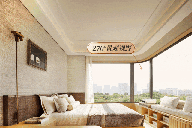 超6米面宽主卧,搭配全景窗设计,引入充沛采光与开阔视野,是旧规小户型主卧"转不开身" 的格局想象不到的。