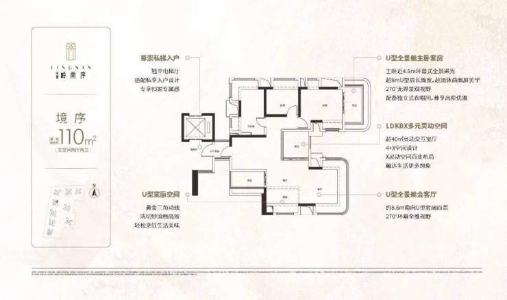 2、高得房率,户型设计好,广州首创双U型全景舱,私梯入户,还是整个黄埔首个0飘窗项目