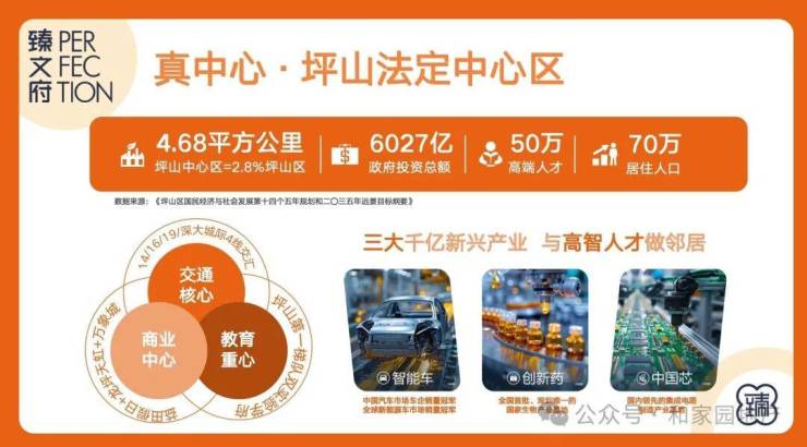 ★千亿投入——依托政府规划,坪山与前海并列第一发展梯队,将打造成为深圳的东部中心和辐射粤东的最高增长极,其中约6027亿元投入到坪山新区投资规模,预计2030年将引入约50万高端就业人才、约70万居住人口,届时坪山将成为独树一帜的未来城市样板!