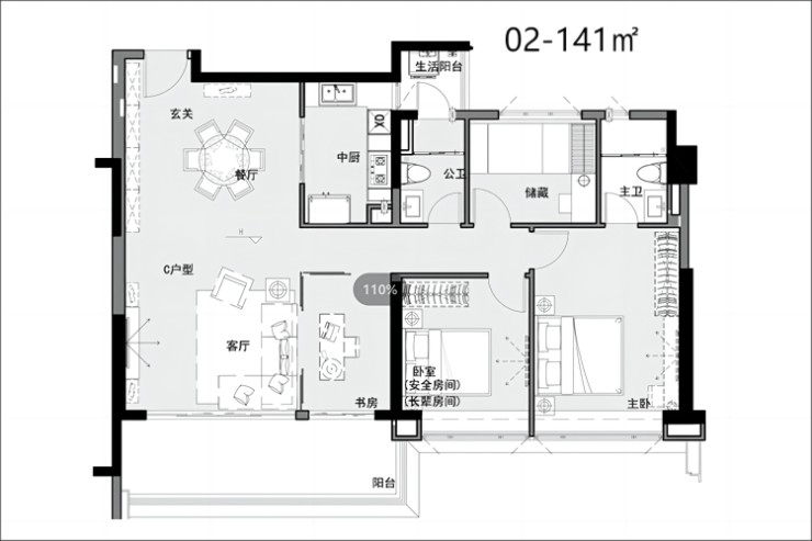 <02/03/05户型-建面约139-142m²四房两卫>