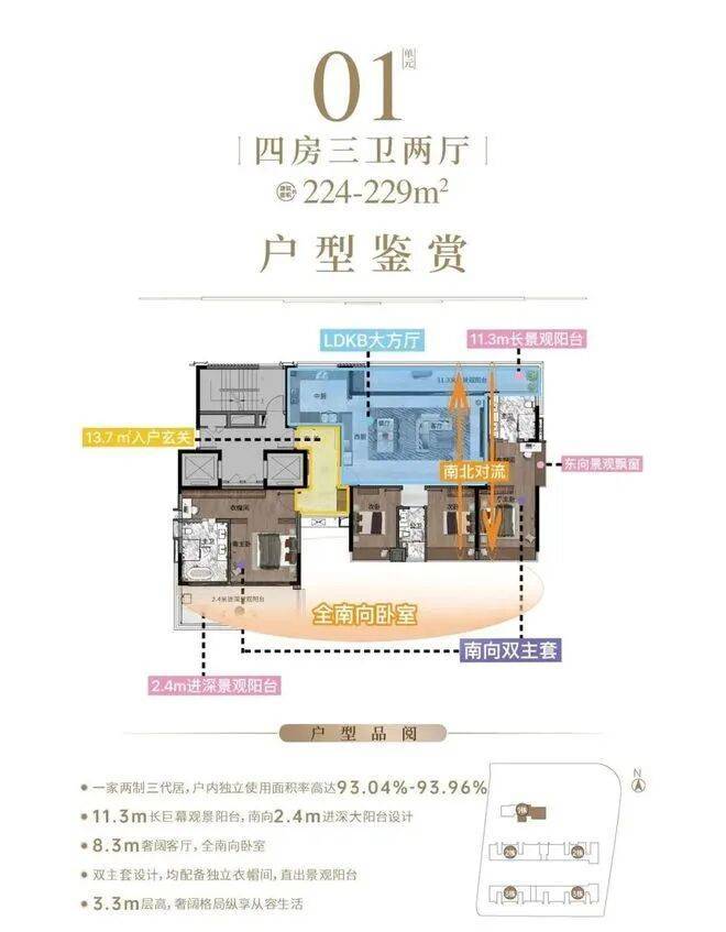 130-229㎡纯粹大平层,聚焦高端产品的专注度两梯两户板式布局,零接触归家,超宽景观阳台,革新人居体验