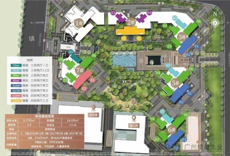 3、教育:项目配建9班幼儿园;一公里范围内怡园小学(北校区)、怡瑞小学、广大附中黄埔实验学校(东校区)、广州市第八十六中学(初中部)等超10所学府环伺。