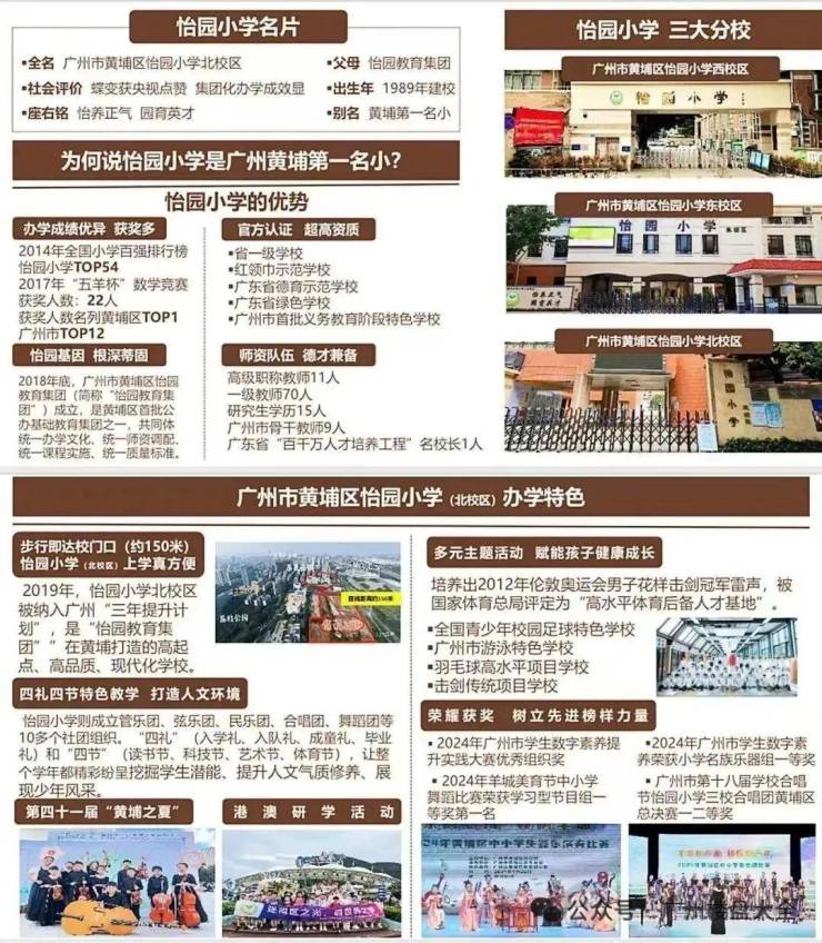 其中【怡园小学】是 建于1989年老牌名校,于1994年评为广东省首批省一级小学,早于东风东小学、华阳小学;【广州86中(初中)】是广州东部老牌的黄埔区区属头部重点中学。