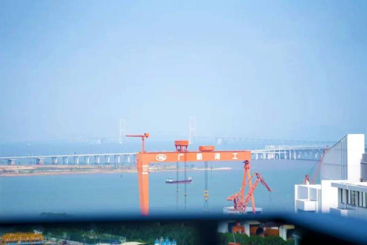 东面是,辽阔无垠的海面,深中通道以雄壮之姿巍然屹立在伶仃洋上空,天晴时甚至眺望深圳城市天际线。