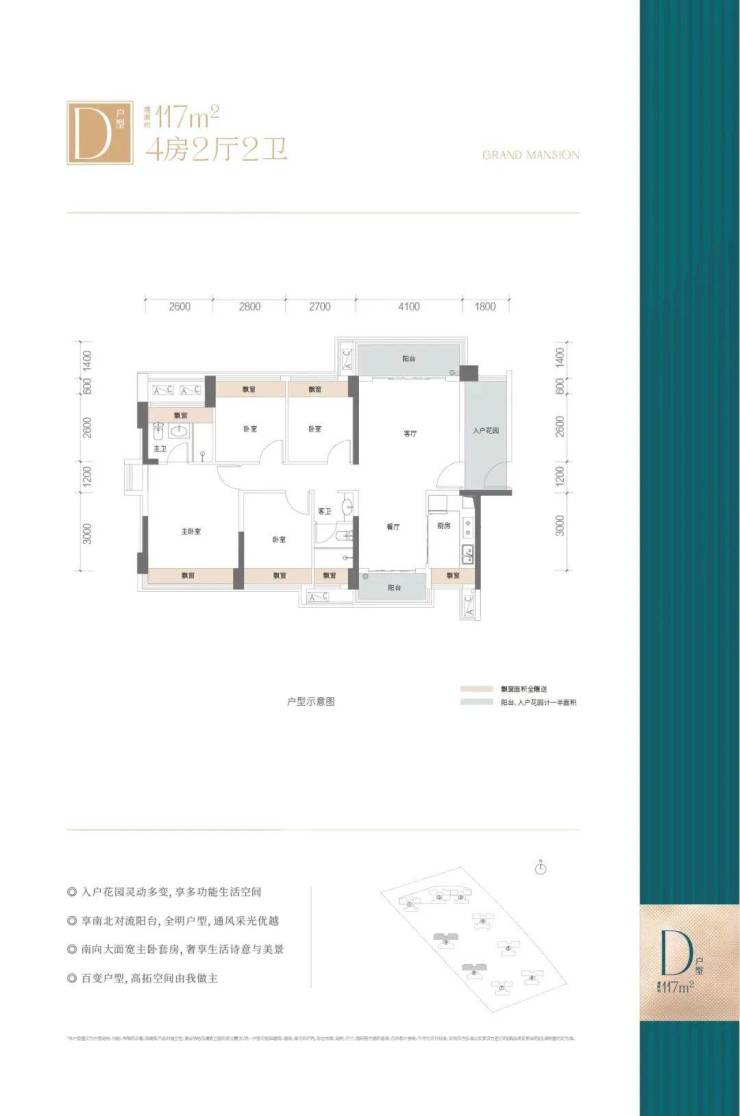 建面约117平,自带一个全赠送的入户花园,为生活释放更多想象。
