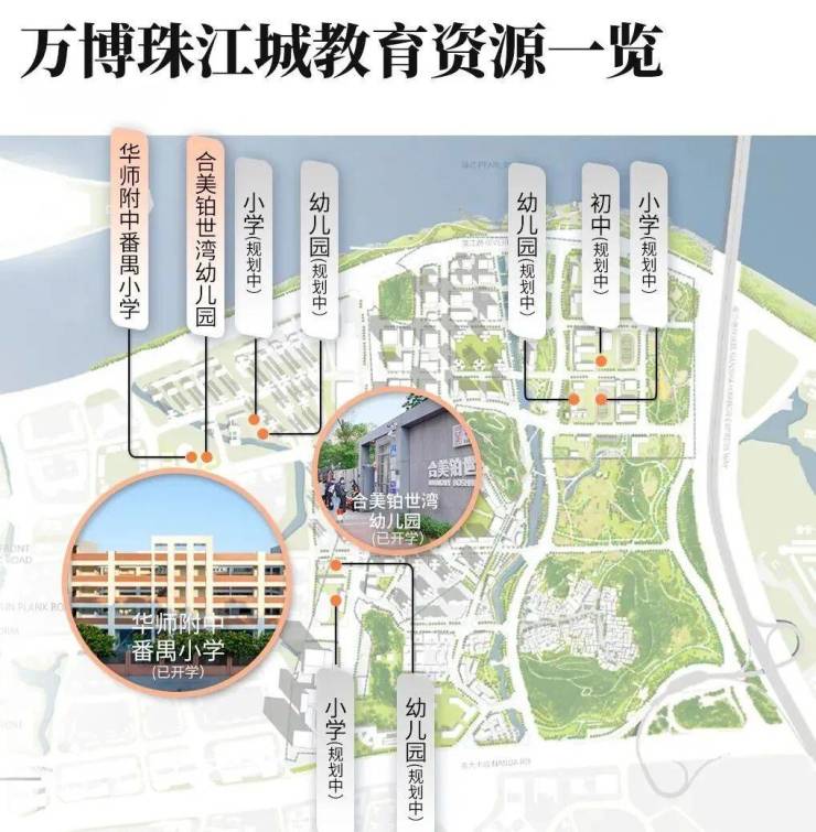 其中配置24班华师附中番禺小学及12班公立合美铂世湾幼儿园(已开学)