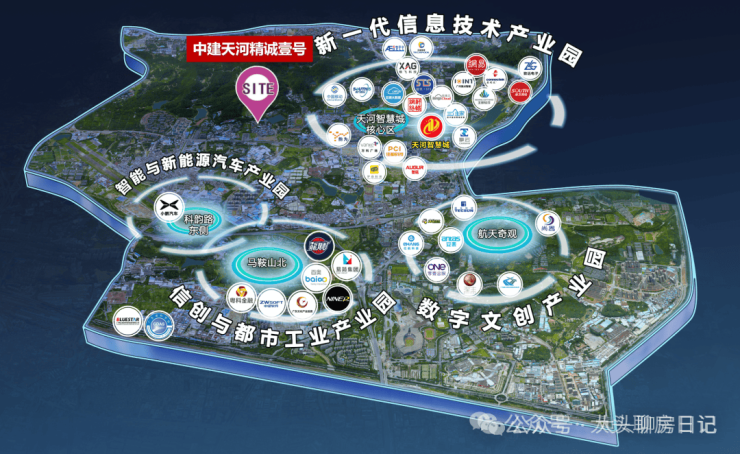 【千亿级科创新城】智慧城作为广州CTD(中央科创区),2023年营收超1200亿元,实现同比增长16%左右,现聚集2800多家高精尖科创企业(小鹏、网易、酷狗、中国移动等头部企业),汇聚超25万高知高薪人才,中建天河精诚壹号位居智慧城芯,将承接产业腾飞的发展红利。