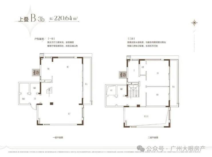 建筑面积约220-265㎡,大尺度大阳台,双层大挑空设计