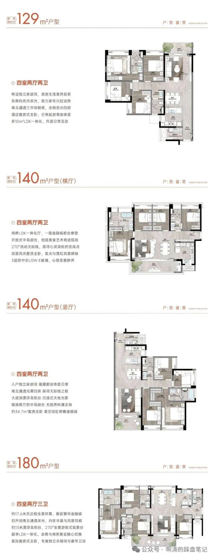 户型面积:129-180㎡四房