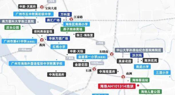 项目距离地铁2号线和广佛线交汇的南洲站仅约400米,交通便利。周边还有广州绕城高速和广州大道交汇,位置“四通八达”。尽管地块被不少主干道包围,可能面临噪音和粉尘干扰的问题,但其便捷的交通网络仍然使其成为理想居住选择。