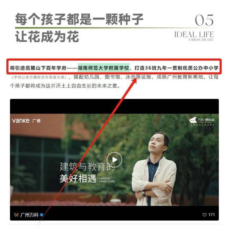 6月16日广州万科官方公众号文章中就明确提到了引入湖南师范大学附属学校