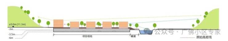 项目将整个场地统一抬升至11m,获得更好的景观视野与私密性。总裁会馆与碧道自然顺接,与大自然生态产生更亲密接触。