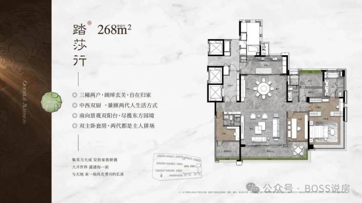 产品与配套出众,容积率仅2.93,打造低密板式社区,主力户型107-268㎡三至四居,全南向设计、得房率突出,部分户型双主套配置;社区自带唐风会客厅与中式园林,周边全龄优教、三甲医院、大型商圈及多座公园环绕,一站式满足生活所需,尽显高端居住质感。