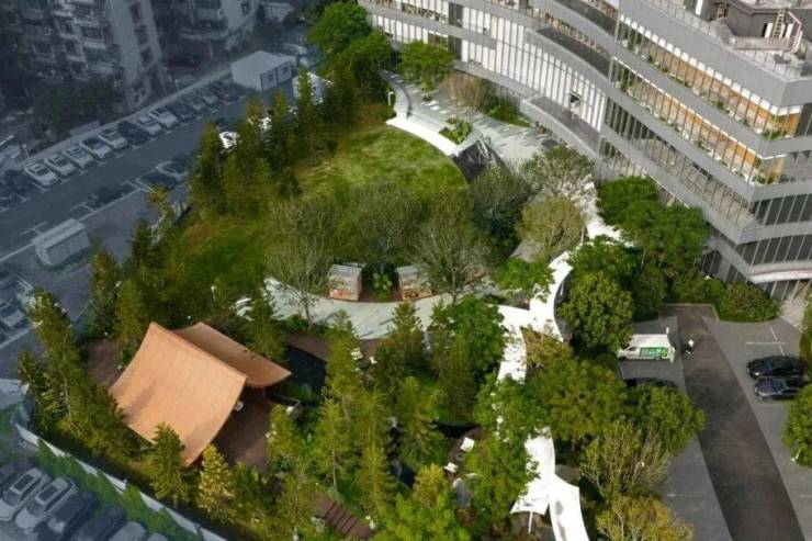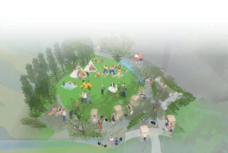木质的市集盒子掩映林间,台地花境素雅自然。人们在此慢下脚步,感受市井烟火中的生活气息。