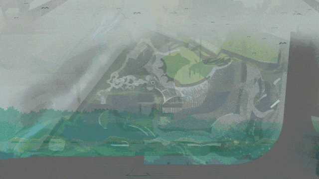 极具张力的扬帆线条,勾勒出项目Logo的艺术化形态。它更是一款富有趣味的互动装置:扫码可了解植物与沙土系统如何协同净化雨水;踩踏感应装置则会触发管内喷出清凉水雾,而喷雾水源正是来自净化后的雨水,巧妙诠释了生态友好与资源循环的可持续理念。
