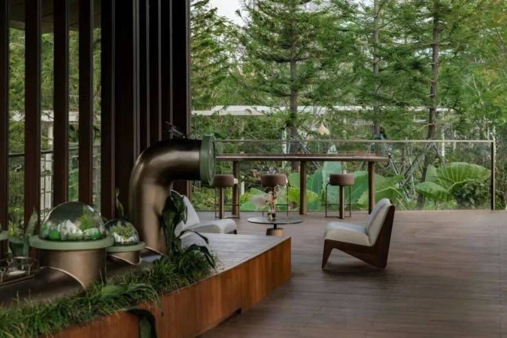 这条连接自然植物园与春熙集市的生态连廊,为访客提供了一段从停车场至售楼处的、舒适且有仪式感的过渡体验。