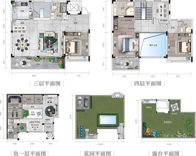 A1下叠 建筑面积约192㎡、花园约297-338㎡、地下室约119㎡