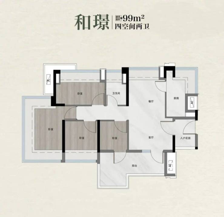 3栋塔楼,包含建面89㎡、92-99㎡户型,通过阳台延伸空间感,贴合了年轻家庭对总价和功能性的双重诉求。