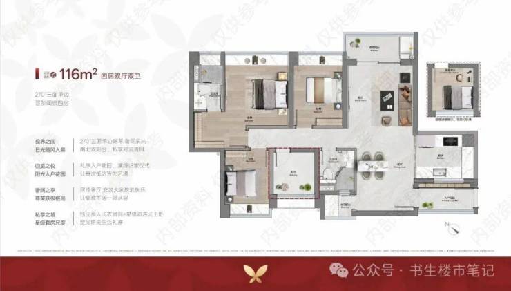 🏆建面约116㎡-270°单边王 四房双厅双卫