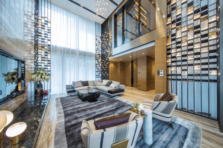 以前沿的生活艺术美学融汇建筑艺术美学,匠造48席独立别墅,产品面积区间约280-445方左右,每栋可使用面积约达上千平方米。