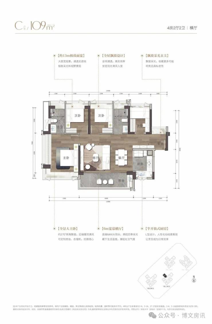 【产品面积】建面约108㎡/109㎡/138㎡~143m²海幕纯四房