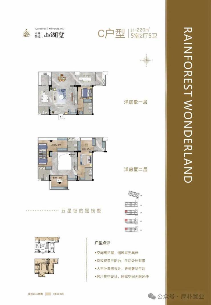 洋房墅:1#、2#景观楼使用面积约107-220㎡ 四房、五房
