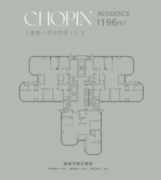 总楼层:1A栋41层;2A、2B、2C栋42层,1B栋59层,1C栋自持租赁54层,幼儿园4层。