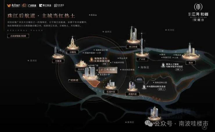秀珠实城发·江湾和樾坐落广州五大主城区之一的海珠区,立于珠江后航道,坐拥千年羊城繁华;地处海珠新活力文商旅融合圈之内,低密滨江生活,主城热土,天生瞩目。