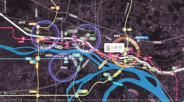 咫尺5/7号线换乘站——大沙东站;东进大动脉5号线串联珠江新城—金融城—黄埔临港经济区。