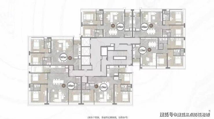 项目公寓户型覆盖 86㎡至 425㎡多个面积层级,其中C地块主力户型为109㎡至141㎡的大平层,北向两房、南向三房布局均衡,重点面向高端自住买家与成长型新贵家庭。每一款户型都以功能分区清晰、尺度感宽裕、动静分离与高面宽采光为核心哲学,让居住在这样的空间内不只是满足生活所需,更是一种从容优雅的日常享受。