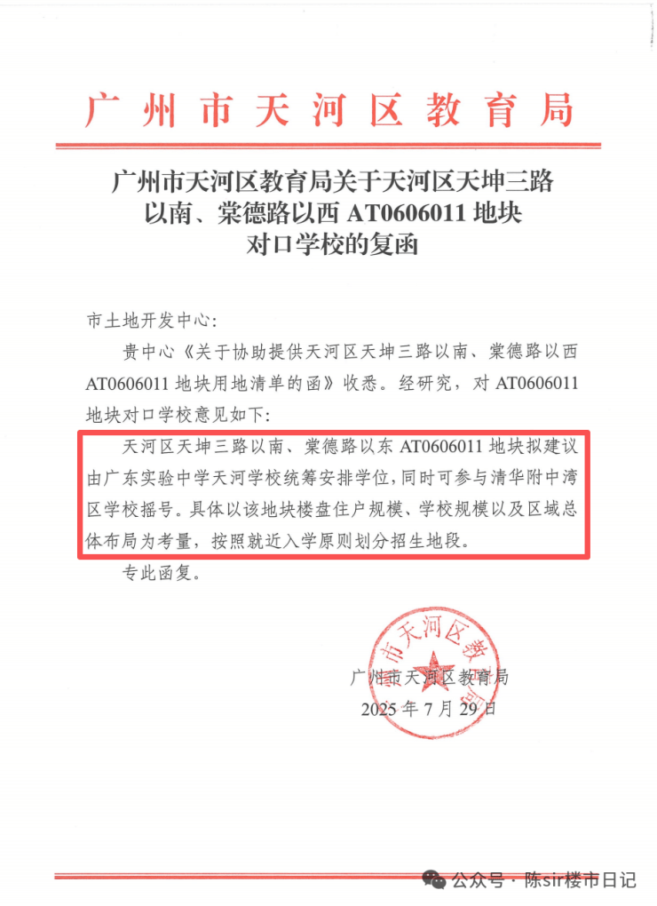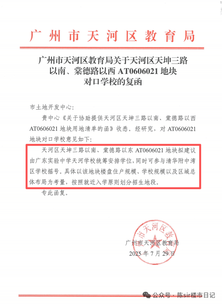 地块出让时就把学校安排得明明白白拟建议由广东实验中学天河学校(即保利天瑞配建学校,九年制)统筹安排学校学位,同时可参与清华附中湾区学校号。