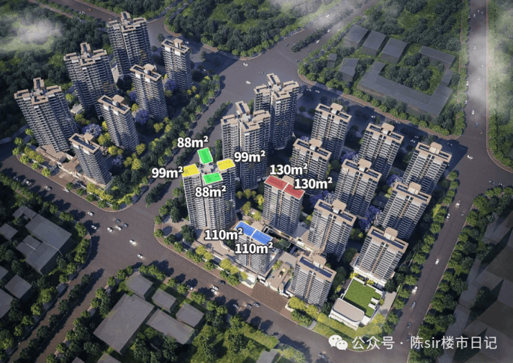 其中板楼2T2设计,主打110平、130平户型;