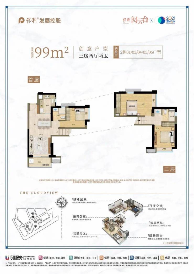 主推户型:复式约99㎡ 灵动二加一房