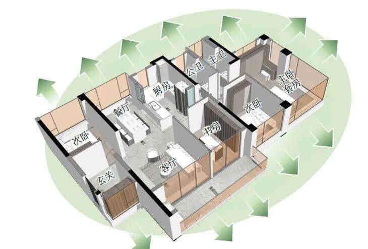🔸扣住每一个广府居住细节:五开间朝南、全屋南北对流