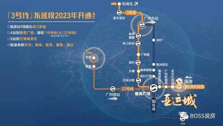 3号线东延段已经开通,亚运城始发直达珠江新城。4纵4横快速路网,新化快速直通琶洲劲省15min(来源中国广州发布)