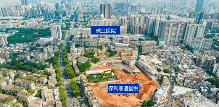 从地图上可以看到,在楼盘300米的范围之内有两所医院,南方医科大学珠江医院和广州医学院第二附属医院;