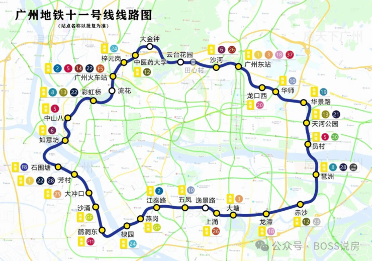 广州地铁11号线已经投入运营,全程31个站点,26个换乘站点,目前换乘的站点就有9条,分别是分别是 1 号线、2 号线、3 号线、5 号线、6 号线、8 号线、18 号线、21 号线和广佛线,后期随着后续线路的建设和开通,未来 11 号线还将与在建或规划的 7 条线路进行换乘,包括 10 号线、12 号线、13 号线等