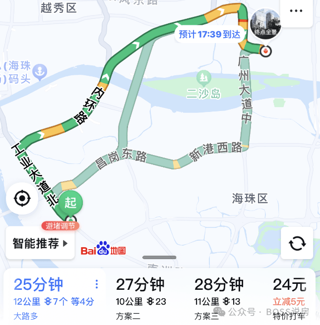 接下来看看自驾到琶洲,珠江新城和纪念堂需要多久时间