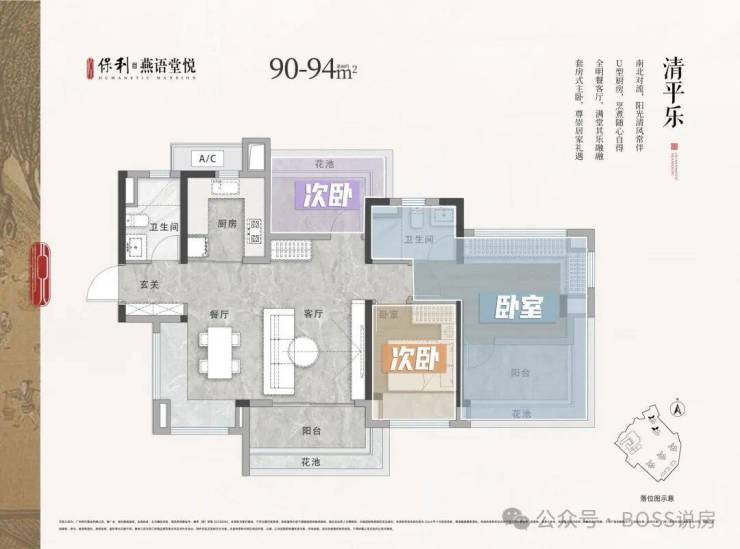 90-94m²,这个户型设计就是为了卷,中间没有什么承重墙,上面标记次卧的位置,既可以改成南北对流,也可以做到四开间朝南,又能做大横厅,用来出租甚至可以改成5房;