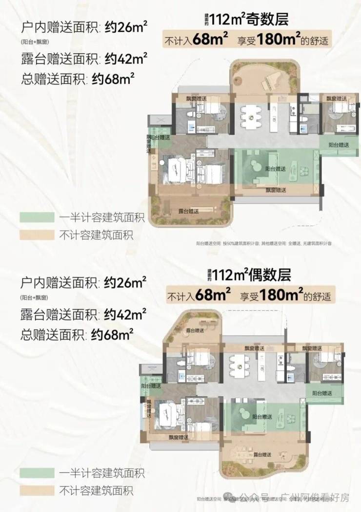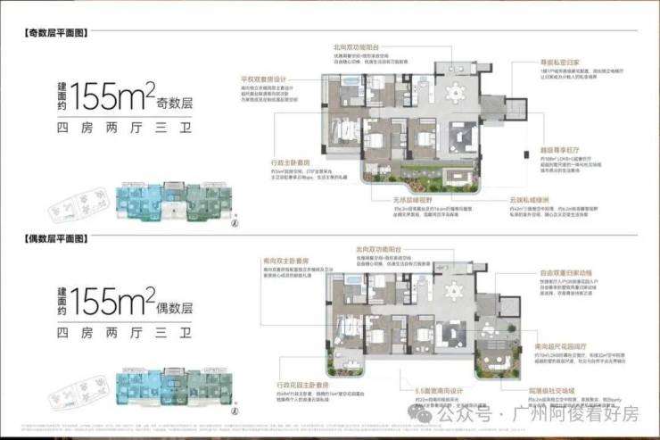 奇数层:超大露台联通客厅与次卧(如155㎡露台52㎡),适合家庭共享;