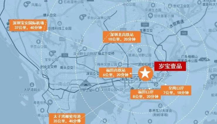 本项目为6、7号线八卦岭站上盖物业,快速联通北环大道,2站地铁(13分钟)直达岗厦北交通枢纽,4站地铁(20分钟)直抵深圳北站,6公里(20分钟车程)抵福田高铁站,37公里(40分钟)达到深圳国际机场,湾区交通枢纽,商务接洽高效无阻