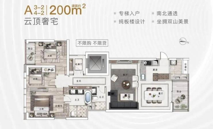 160-220㎡ 2-3+1房(专梯入户)
