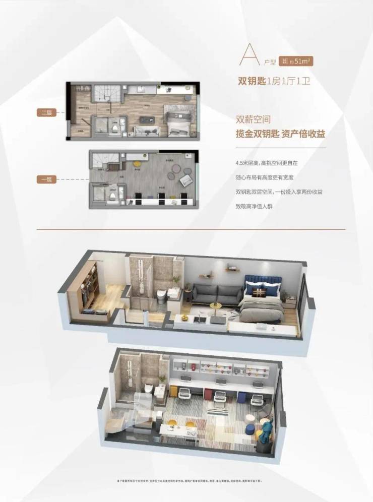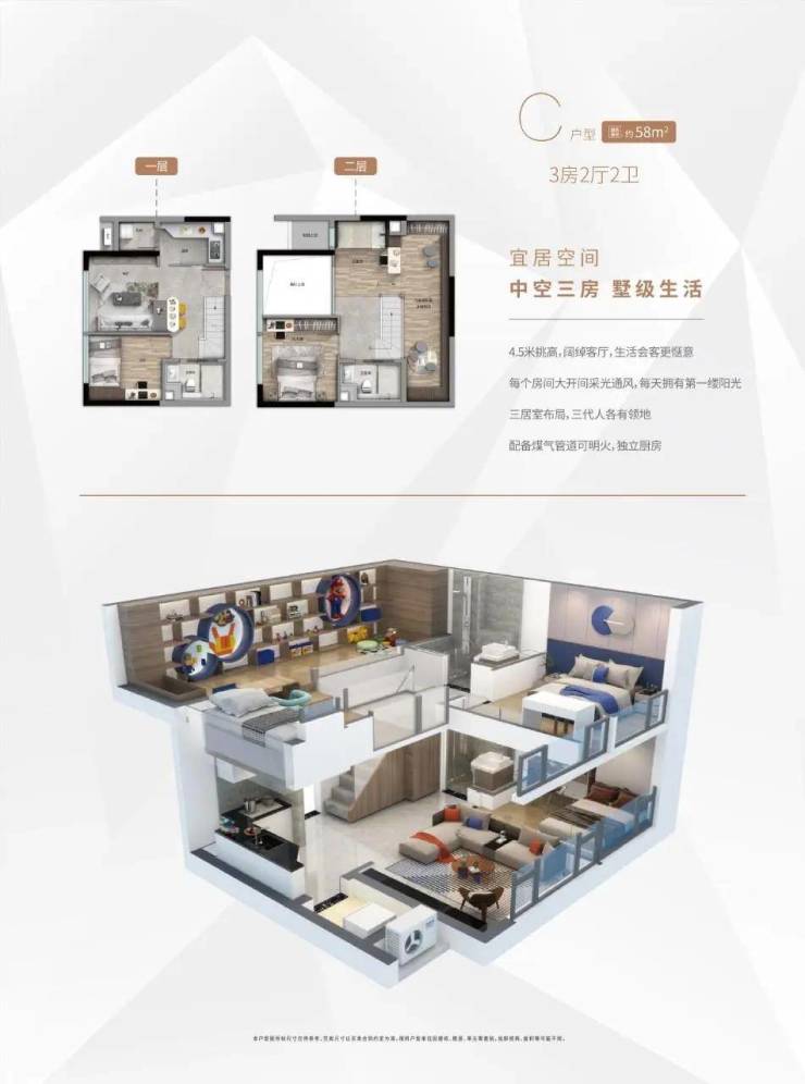 产品户型:33m²、50m²、58m²复式
