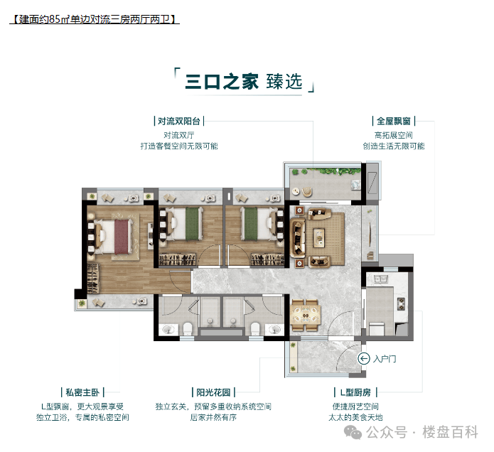 新式蝶式布局,户户入户花园设计,对流通风无遮挡,尽享360°环幕视野。