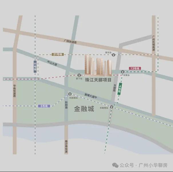 🛣3条主干道中山大道丨黄埔大道丨科韵路🛤4条城市高速广州环城高速丨华南快速干线丨广园快速路丨南沙港快速🚊5条地铁线环绕4号线丨5号线丨11号线丨13号线丨21号线🚥20万㎡金融城站交通枢纽🚆整合广州两大重要交通枢纽——广州南站、广州白云机场。从金融城站到广州南站仅需10分钟,到白云机场仅需20分钟🛫金融城专属值机大厅,方便旅客提前办理值机手续,出行无缝连接;🚇容纳4地铁(4、5、13、25号线)+3新型交通线+1城轨(广佛环线),一站即可通全城!