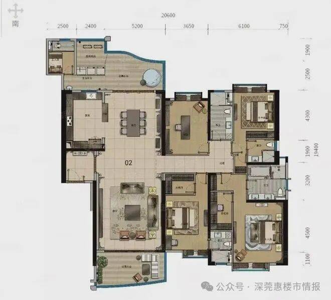 匠造约4米层高,约6.7米大开间连接餐客厅、阳台,实现南北对流,全屋通透,即使在夏日也能享受穿堂风自由穿过,舒适感不言而喻。