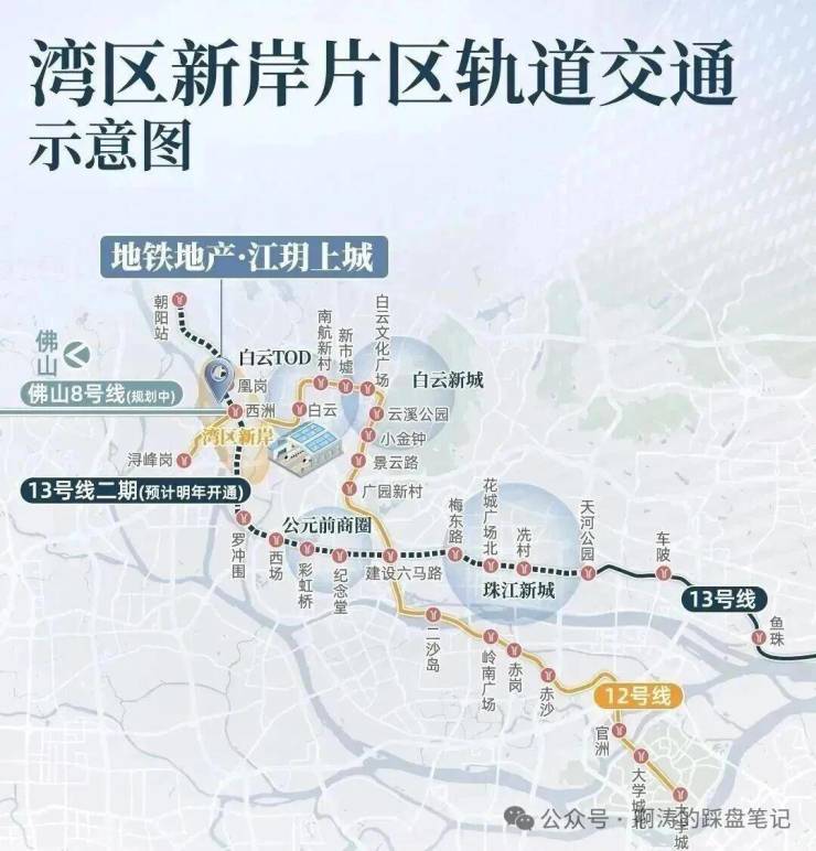 白云站、地铁 12 号线投用后,片区在建 13 号线二期(朝阳 - 天河公园)有望明年开通,进一步拉近与 CBD 的距离。13 号线二期凰岗站与社区无缝衔接,距已开通的西洲换乘站约 800 米,未来还将建地下通道,业主可直达珠江新城无需换乘。道路方面,青桥街已开通,广海路、槎神大道等正加速建设,冲刺年内通车。