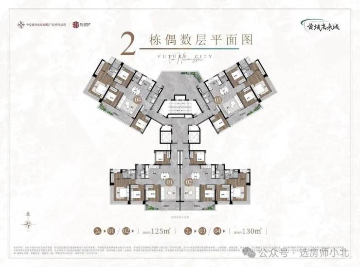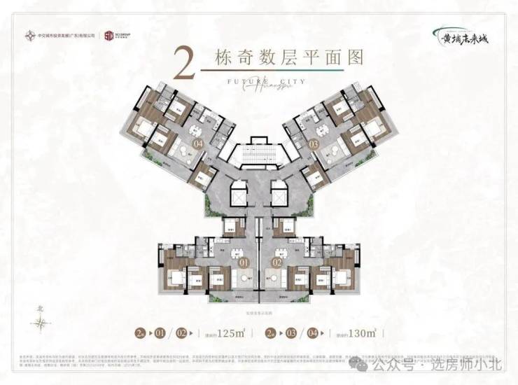1-3栋,是高层住宅,主推建面约120-125㎡、约132-135㎡产品;