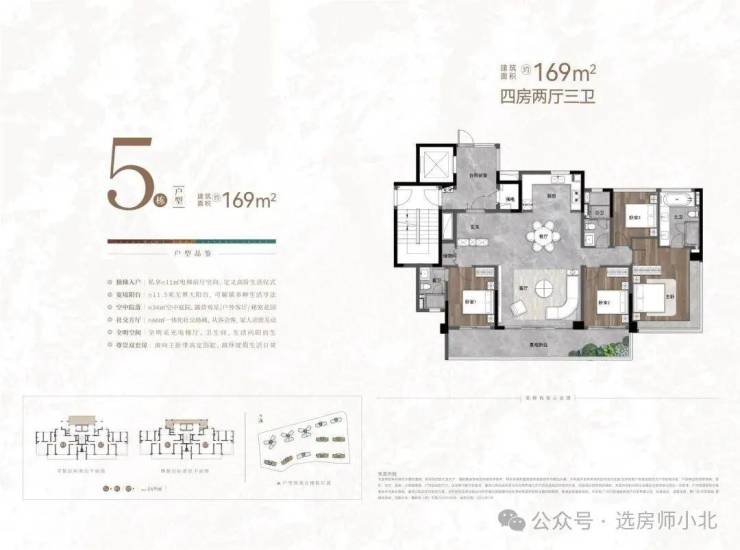 4-5栋、9-12栋,小高层,主推建面约165-167㎡大户型;